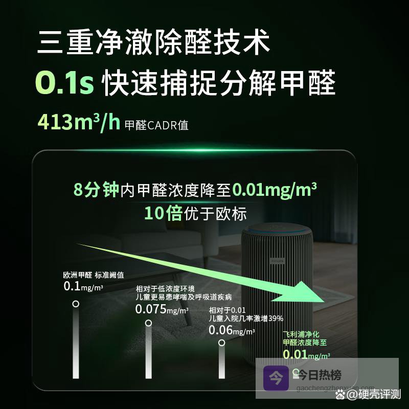 高效净化:超国标CADR值,具备颗粒物和气态污染物的强大净化能力,迅速改善室内空气质量。