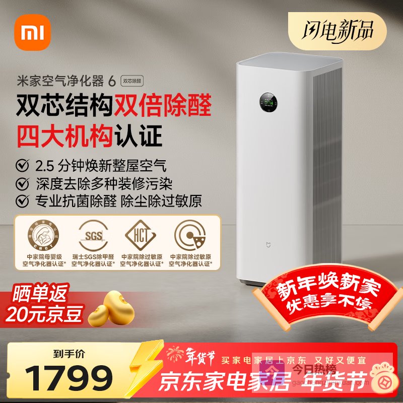 【京东自营】米家【热销新品】小米空气净化器6双芯除醛家用除甲醛除菌除味除过敏原认证京东自营¥