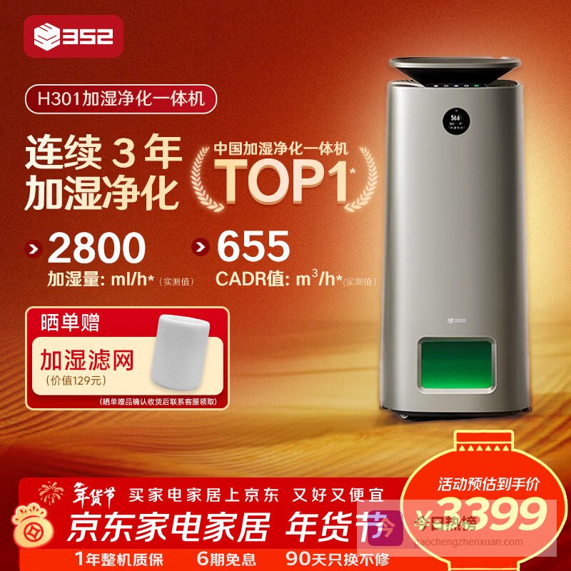 【京东自营】352H301加湿器空气净化器加湿净化一体机无雾家用客厅卧室静音除菌除甲醛过敏原病毒空气¥