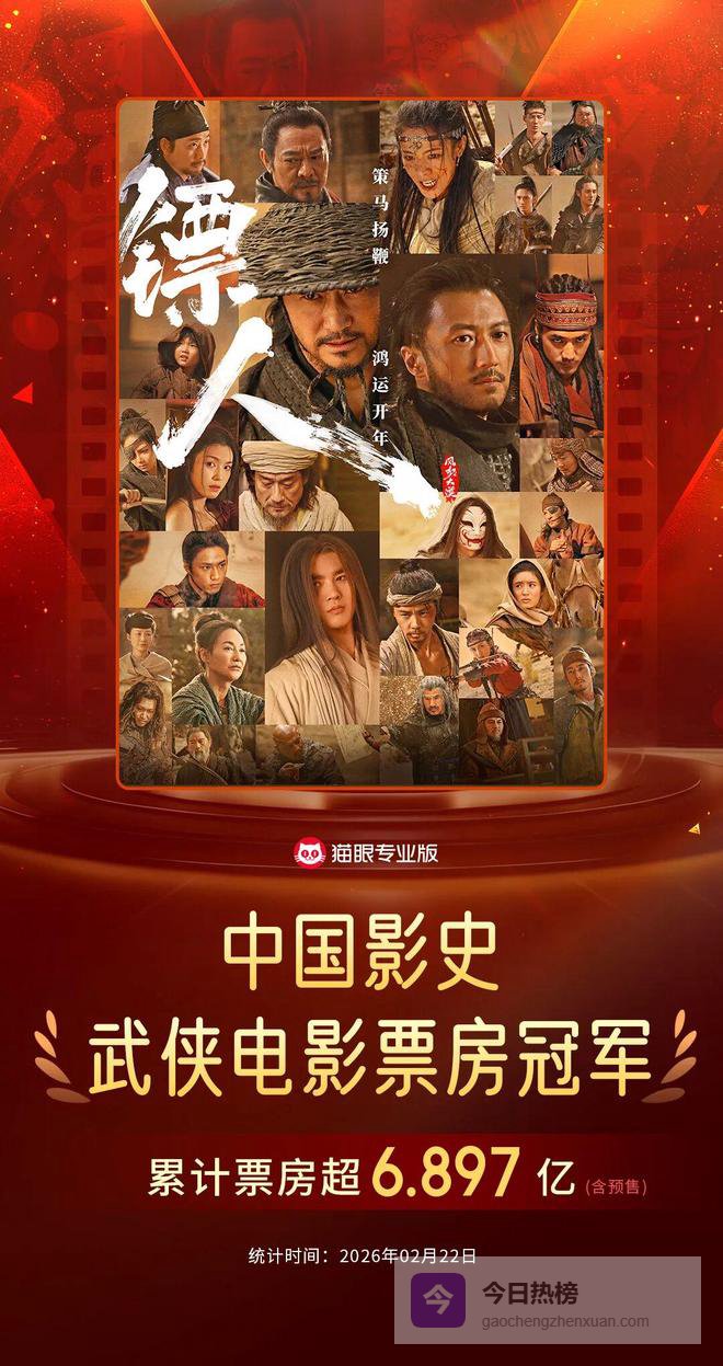 目前,《镖人:风起大漠》已从开局的第四名一举跃升至单日第二,档期内票房已达8亿。不仅在档期后半实现对《熊出没·年年有熊》的反超,跻身前三,也超越2025年春节档上映的《射雕英雄传:侠之大者》,成功登顶中国影史武侠片票房冠军。