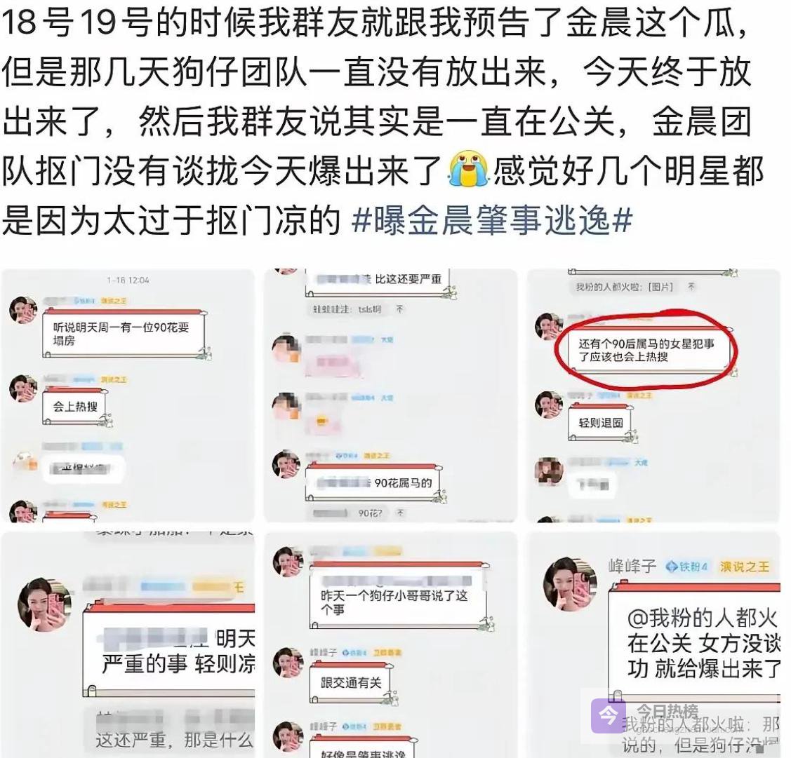 不过随着话题发酵,八卦记者的内部聊天记录被曝光,打破了这一猜测。记录显示,本月 18 至 19 日就有人提前预告,将曝光一位女明星的交通事故,却迟迟未发,引发不少争议。据悉,曝光前金晨团队曾与记者协商处理此事,但因团队过于抠门、不愿让步,协商彻底谈崩,才导致事件公之于众