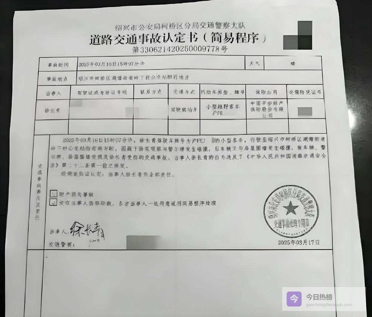 爆料称,这事发生在 2025 年 3 月 16 日,地点就在浙江绍兴市柯桥区。当时金晨驾车出了事故,可她没留在现场处理,反而第一时间溜了,把烂摊子全丢给助理徐长青,让助理替她扛下责任