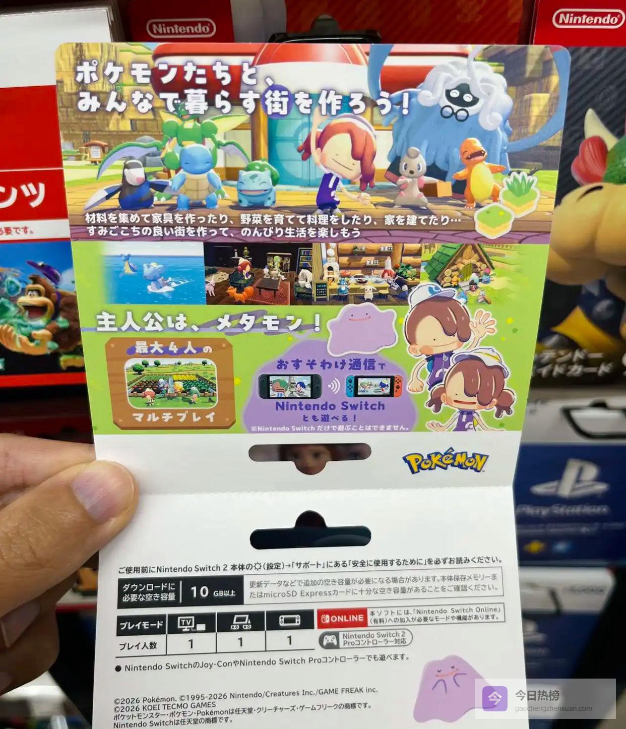 在《宝可梦 Pokopia》发售数日前,已有粉丝通过实体渠道获得了任天堂Switch 2平台的日版下载卡。X用户Genki_JPN分享了卡带包装正反面照片,其中揭示了游戏的具体文件容量。