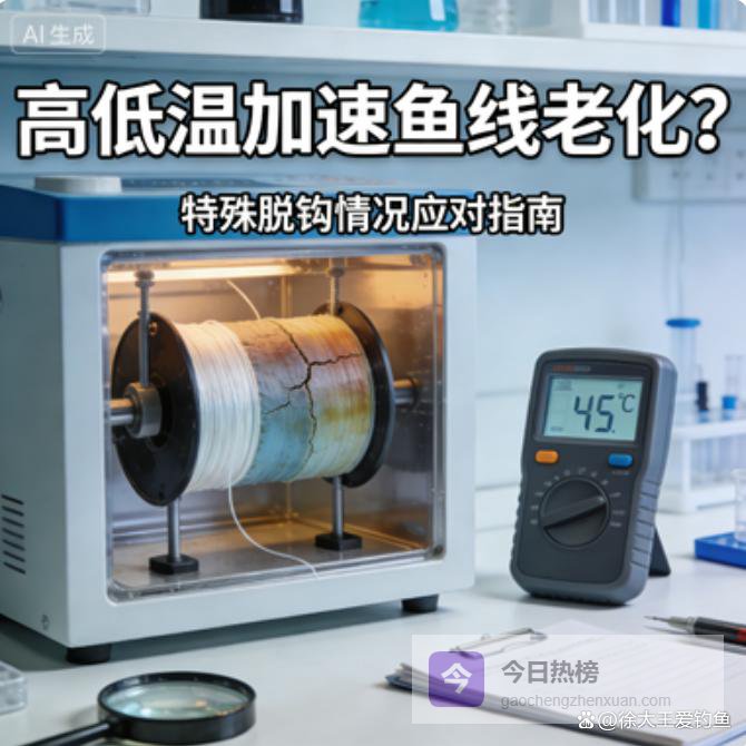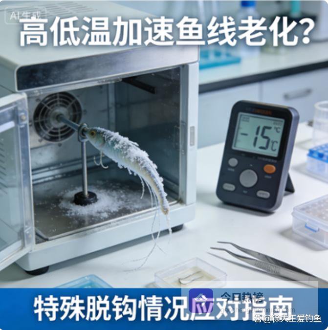 先搞懂核心逻辑:鱼线的材质(尼龙线、PE线、碳线)都有温度耐受范围,高温会让鱼线软化、强度下降,低温会让鱼线变硬、发脆,这两种情况都会加速鱼线老化,降低其抗拉性和延展性。而鱼线的核心作用是“缓冲鱼的冲击力、传递信号”,一旦老化,要么无法缓冲大物的冲刺力,导致鱼钩被拉脱;要么延展性变差,提竿瞬间的冲击力直接传递到鱼嘴,拉豁鱼嘴脱钩。很多钓友只关注鱼钩锋利度和饵料状态,却忽视了鱼线的“健康状况”,尤其是在高低温环境下,鱼线老化速度是常温的2-3倍,脱钩概率自然大幅上升。记住:高低温作钓,先检查鱼线状态,再谈操作技巧,否则再精准的提竿也难避免脱钩。