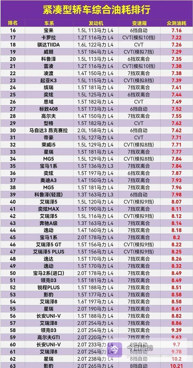 紧凑级家轿向来是家庭用户的“刚需担当”,灵活好停、价格亲民,但隐藏的长期成本常被忽略。翻看中国汽车流通协会2023年报告,超六成消费者将“燃油经济性”列为购车前三考量,远超五年前的三成比例。这背后是实打实的生活账:按年均行驶1.5万公里、油价8元/升计算,油耗相差1L/100km,五年油费差额轻松突破6000元。难怪网友调侃:“买车时省一万,用车时多花三万”,这份由真实车主众测汇编的66款车型油耗榜单,恰似一盏探照灯,照见了数字背后的真相。