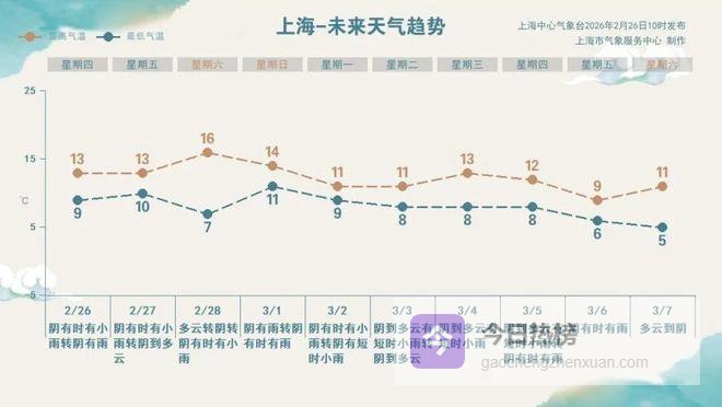 未来一周,随着西南暖湿气流趋于活跃,申城将进入一段多阴雨天气节奏。上海中心气象台预计,本市大部分时间以小雨为主,下一场较明显的降水过程预计出现在周日前后,建议大家日常随身携带雨具。气温方面起伏不大,最高气温在12~16℃,最低气温在7~11℃。下周五前后受冷空气影响,本市将再迎来一次较为明显的降雨和降温过程,请市民及时关注天气变化,合理安排生活与出行。