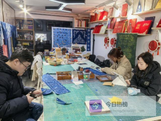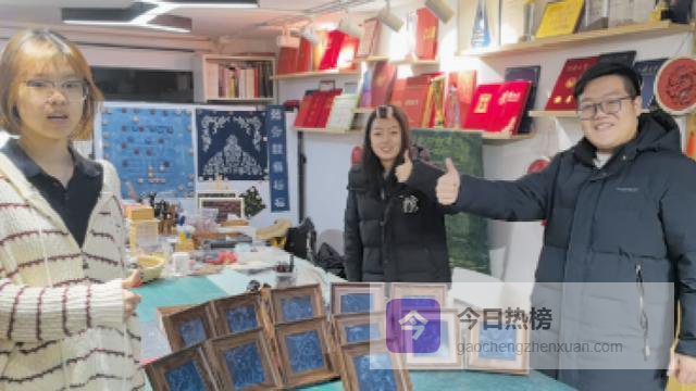 与此同时,酒店管理学院的另一支队伍走进嘉定安亭的药斑布工作室。在传承人指导下,学生们体验从设计制版到清洗装裱的完整印染流程。在完成“十二生肖”纪念相框的制作后,成员们深刻体会到手工艺的艰辛与价值。团队还发挥创意,设计了融合校园元素的相框及“落樱缤纷”方巾图样,并计划推动药斑布文创进入高校市场。