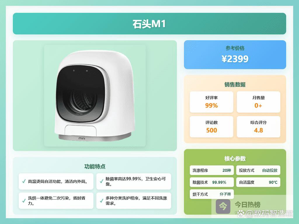 石头H1这款洗烘一体机,亮点在于它的分子筛低温烘干技术。传统的烘干方式温度比较高,容易损伤衣物纤维,造成衣物变形、褪色。分子筛技术能够在较低的温度下实现高效烘干,更好地保护衣物,特别是对于一些比较娇贵的面料,这个功能就显得很有必要。而且,洗烘一体的设计确实很方便,洗完直接烘干,省去了晾晒的麻烦,尤其是在潮湿的南方,简直是救星。