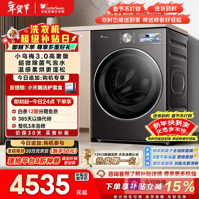 第3款:小天鹅懒人三筒洗衣机小天鹅作为国内知名的家电品牌,深耕洗衣机领域多年,拥有着不错的市场口碑和技术积累。它一直致力于为消费者提供高品质、智能化、健康化的洗衣解决方案。小天鹅在产品研发上不断创新,并根据不同用户的使用习惯,推出了多种型号的洗衣机产品,满足了不同家庭的洗衣需求。在智能化方面,小天鹅也在积极探索,力求为用户带来更便捷的使用体验。