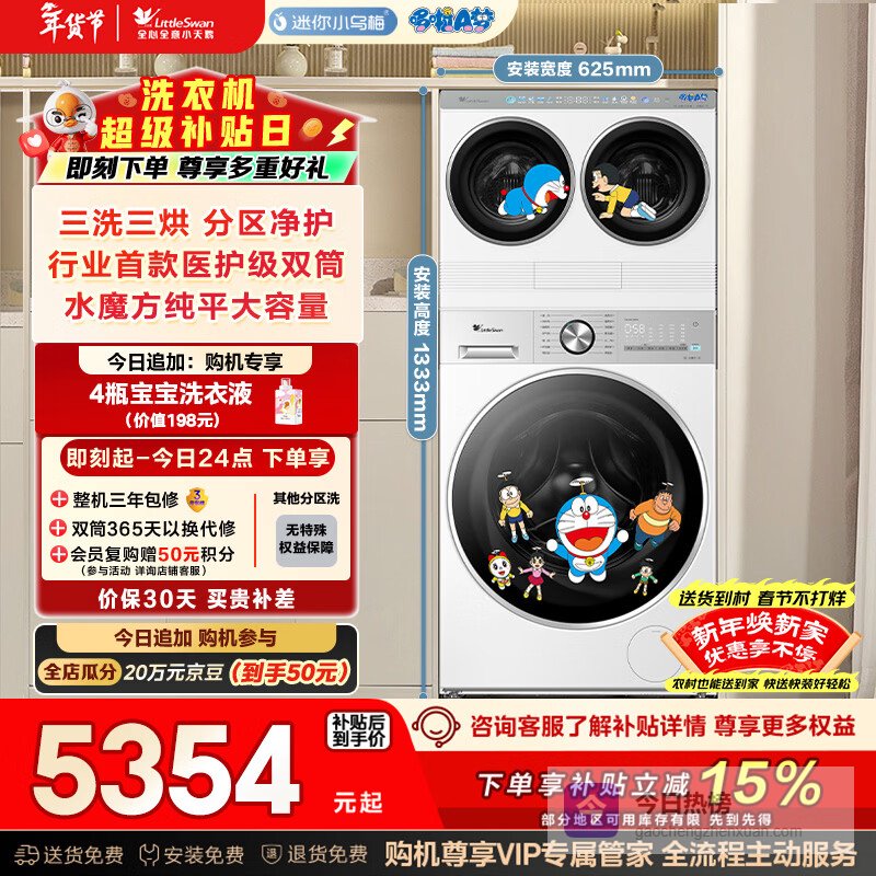 小天鹅(LittleSwan)迷你小乌梅 懒人三筒洗衣机 带烘干洗烘一体 2+12KG 哆啦A梦联名 可叠放自由组合 内衣洗 国家补贴¥