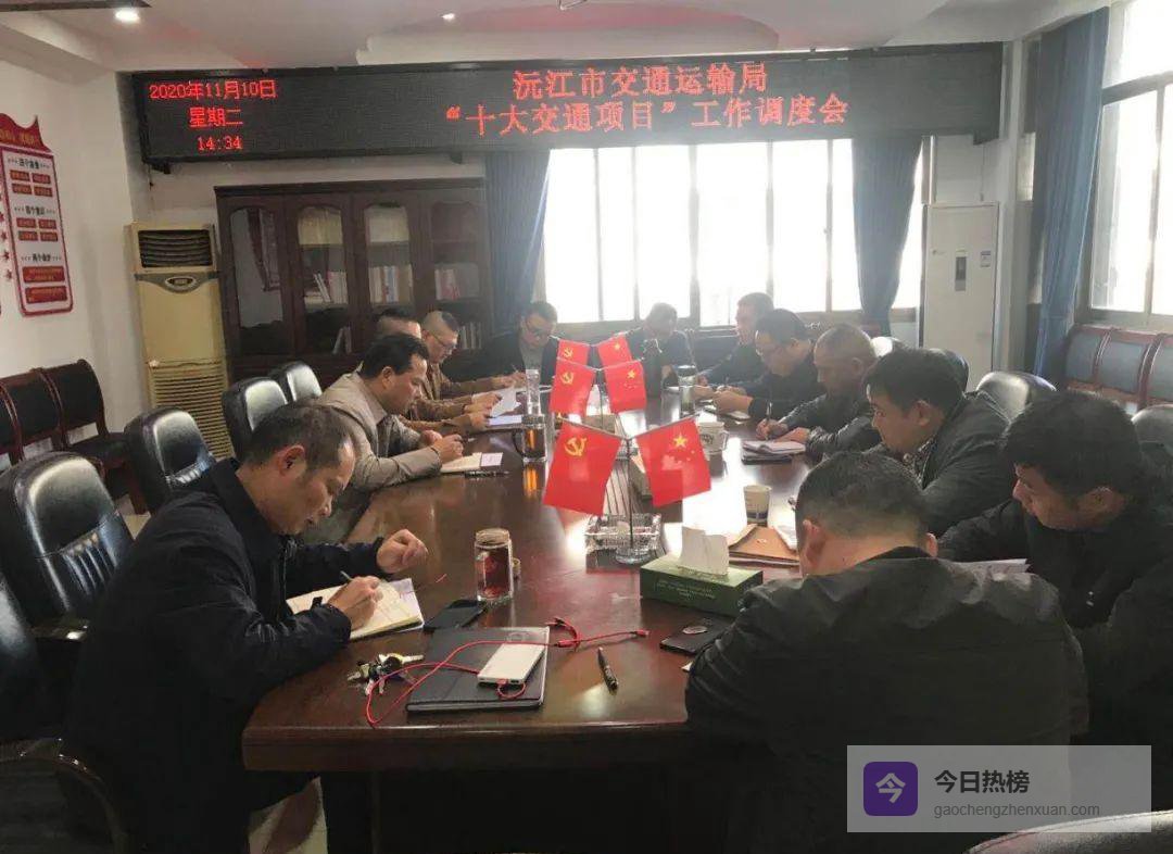 11月10日下午,沅江市交通运输局召开2020年“十大交通项目”建设工作调度会,分管领导、总工程师、各股室及项目负责人悉数到场,对全年任务进行再动员、再部署。会议要求,所有项目必须抢抓晴好天气,倒排工期、挂图作战,确保年度目标颗粒归仓。