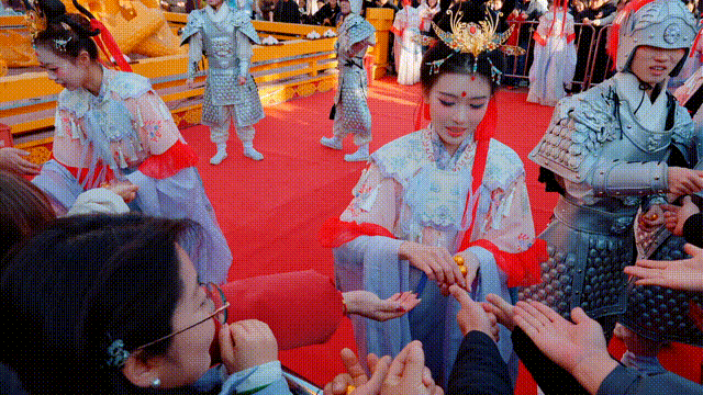 本次元宵喜乐会首次打破传统观演模式,将举办地欢乐太行谷打造为沉浸式的“元宵游园灯会”实境空间。还未到直播喜乐会当天,欢乐太行谷就游客如织,人头攒动,他们都是冲着正月初九至正月十一多位艺人空降园区互动来的。文旅星推官王凯沐先后携手张卓尔、高旭、马韬、李斌彬,带领游客体验长治特色年俗“烤灯糕”、投壶、射箭等活动,其间穿插趣味互动与现场献唱,氛围感拉满;大年初十迈利撒、魏忠杰接力游园,通过转花灯、送祝福、赠好礼等形式,持续传递这份喜乐。艺人与游客近距离互动,现场人气高涨、反响热烈,观众不再是单纯的旁观者,而是化身提灯游园的参与者,沉浸式感受传统节俗的鲜活魅力。更值得期待的是,后续还有刘忻、郭碧婷、曾舜晞、袁一琦等嘉宾轮番登场,这场热闹的元宵互动将延续至正月十四。