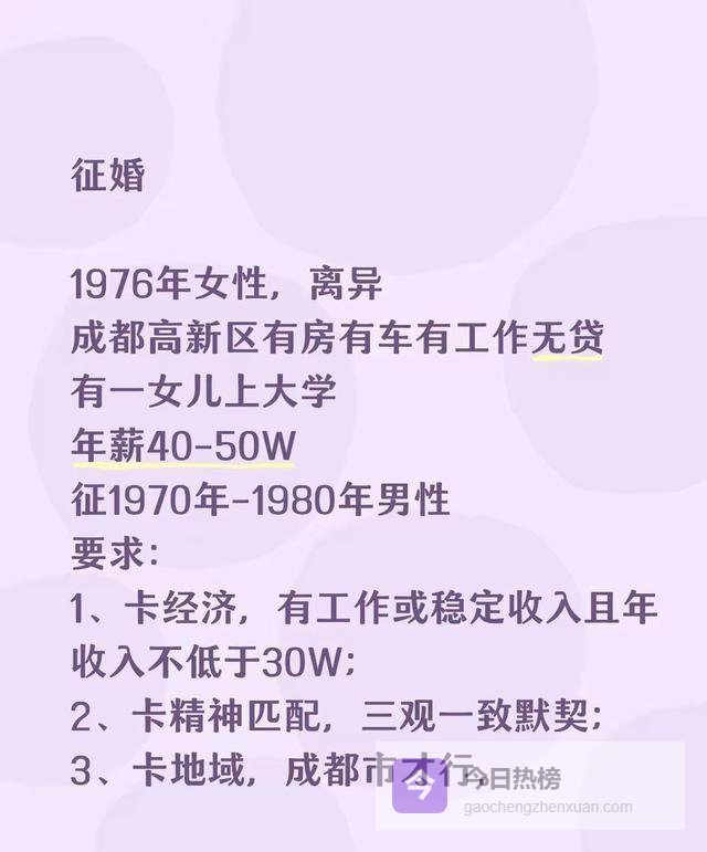 她的相亲条件全网都看过了:月薪一万出头,要求男方年薪40万,在珠三角有车有房,年龄卡在40岁以下,最好还是感情经历一张白纸的“处男”。彩礼开价28.8万,被问急了,甩出一句底气十足的“我是黄花大闺女,从小到大没被人碰过”。
