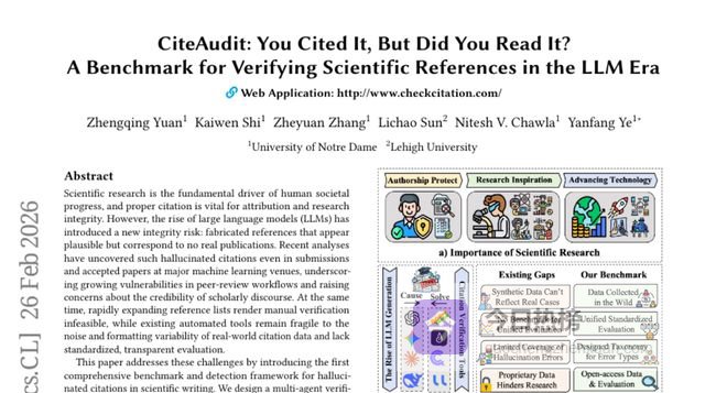 在人工智能迅猛发展的今天,大型语言模型正在深刻改变着学术写作的方式。然而,一个严峻的问题悄然浮现:这些看似万能的AI助手有时会"凭空捏造"学术引用,创造出看起来合理但实际上并不存在的论文引用。这项由圣母大学和里海大学联合开展的研究发表于2026年,论文编号为arXiv:2602.23452v1,专门针对这一威胁学术诚信的新问题,开发出了世界上第一套全面的学术引用真实性检验系统。