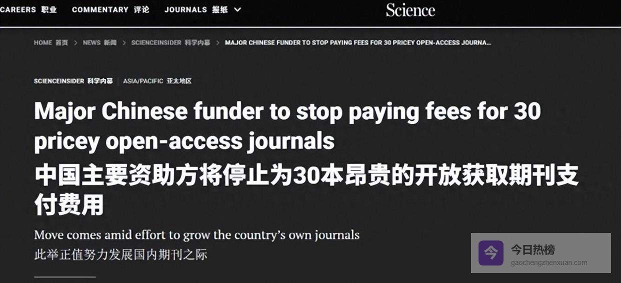 早在2019年,国家就已经有了发展400种世界级本土期刊的打算,到2023年,已经推出了178本英文开放获取期刊,其中差不多一半都不收费。德国研究基金会也为版面费设定了限额,美国国立卫生研究院也在跟进。可以看出,西方高价收割的做法早就让全球不少人不满了。