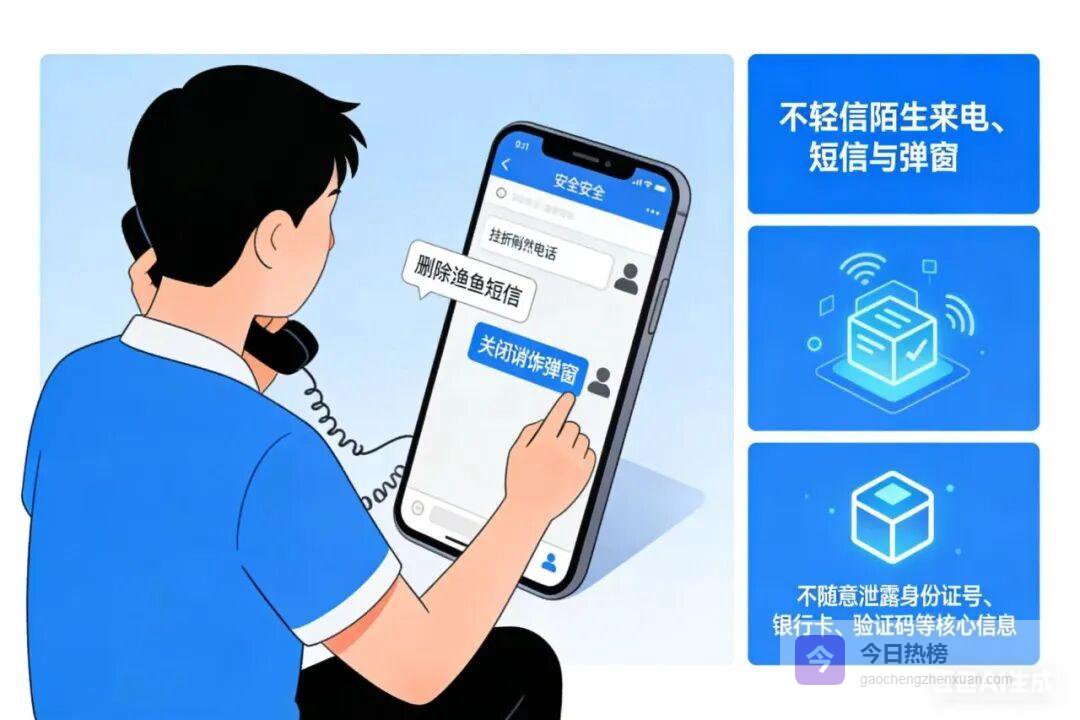 不轻信陌生来电、短信、链接,不随意扫码、转账汇款。