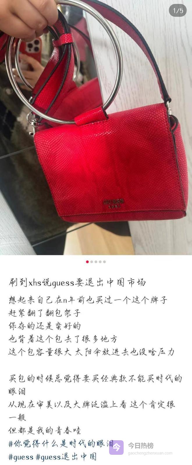 有人听说GUESS要退出中国市场,翻出了包架上多年前买的GUESS包包,直呼“这是时代的眼泪,也是我的青春”。
