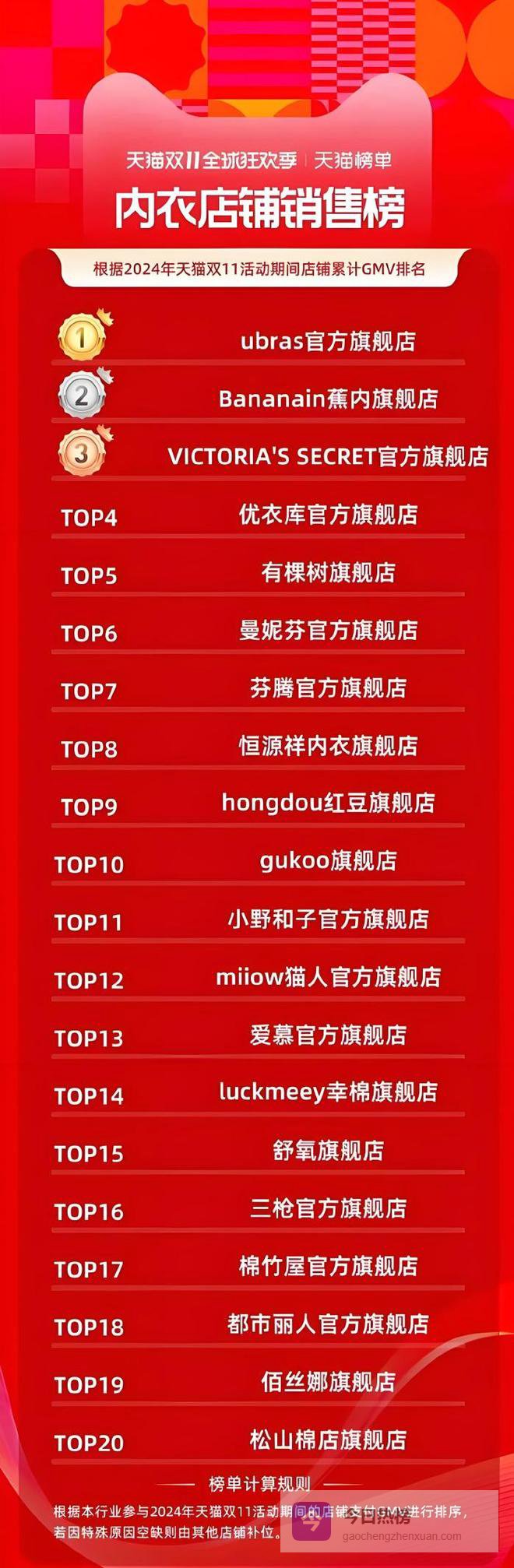 抛开头部品牌不谈,其他本土内衣品牌的成绩也同样耀眼,在2024年天猫双十一期间,排行前五的内衣店铺销售榜当中,除了维多利亚的秘密(Victoria'sSecret)和优衣库,其他都是中国本土品牌。