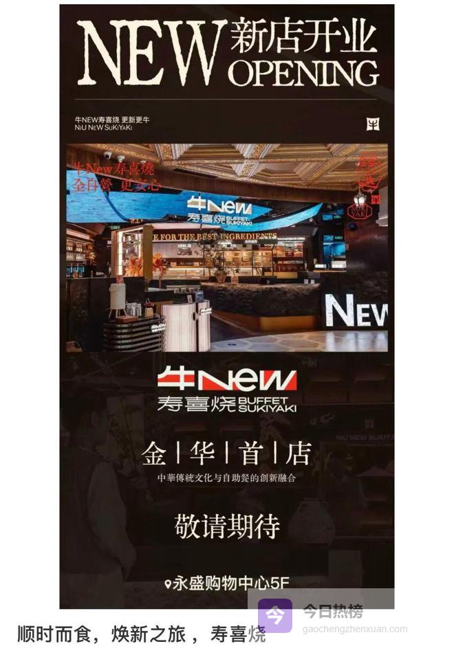 如果信息是准确的,不得不说,永盛的招商能力,在金华商圈里确实是非常厉害。就在今天,小编还刷到了金华市区首家牛NEW寿喜烧即将入驻永盛购物广场的消息,这家在杭州、上海、义乌排队排到腿软的网红自助牛肉火锅一直备受金华许多朋友们的期待。
