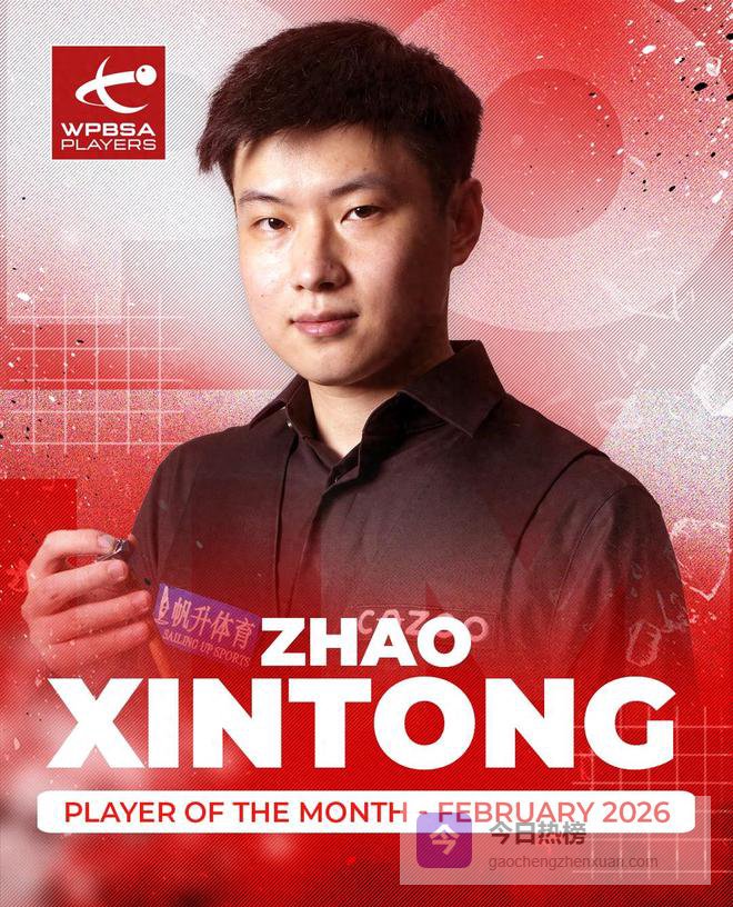 世界职业比利和斯诺克协会通过官博宣布了赵心童当选2月最佳球员的消息。赵心童是2月表现最出色的斯诺克球员,他接连拿到世界大奖赛和锦标赛冠军,其职业生涯排名赛冠军总数也增加至5个。凭借2月的卓越表现,赵心童获得90%选票,领先于同期获得提名的塞尔比和特鲁姆普。