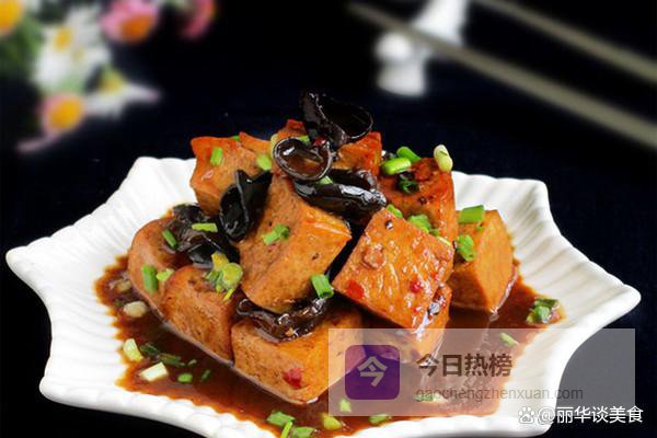 第四道,木耳烧豆腐。这是一道特别适合秋冬的暖身菜,豆腐软嫩,木耳爽脆,口感对比鲜明。老豆腐或韧豆腐切成厚片,用油煎到两面金黄,这样烧的时候不容易碎,也更香。木耳泡发洗净。锅里放少许油,下葱段、姜片和一颗八角炒香,然后放入煎好的豆腐和木耳,轻轻翻炒几下。加入没过食材一半的热水,再放生抽、老抽和一小勺糖调味。烧开后转中小火,慢慢炖煮五到八分钟,让豆腐和木耳充分吸收汤汁的味道。最后可以勾个薄芡,让汤汁更浓稠地包裹在食材上。这道菜特别下饭,豆腐补充植物蛋白,木耳清理肠胃,搭配得很妙。