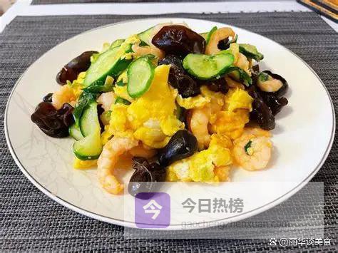 第五道,木耳黄瓜炒虾仁。这道菜口感非常清爽,适合追求清淡口味和减脂的朋友。鲜虾去壳挑去虾线,用一点盐、白胡椒粉和淀粉抓匀。黄瓜洗净切成薄片,木耳泡发。烧一锅水,先把虾仁快速焯烫至变色卷曲立刻捞出,这样能锁住虾的鲜嫩。炒锅里放少许油,下蒜末爆香,先放木耳翻炒,再下黄瓜片,因为黄瓜容易出水,要大火快炒。最后倒入焯好的虾仁,加盐和一点点蚝油调味,快速翻匀就出锅。虾仁的鲜甜,黄瓜的清爽,木耳的脆嫩,组合在一起是春天的味道,低脂高蛋白,吃多了也没负担。
