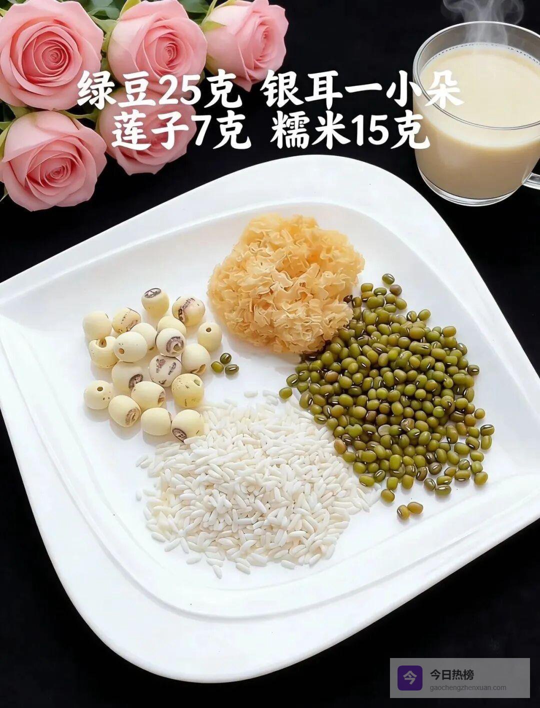 绿色入肝,肝火旺时人易口干口苦。绿豆清热解毒,银耳滋阴润燥,莲子去心火,三合一中和绿豆寒凉,给肝脏做一次温和“大扫除”。