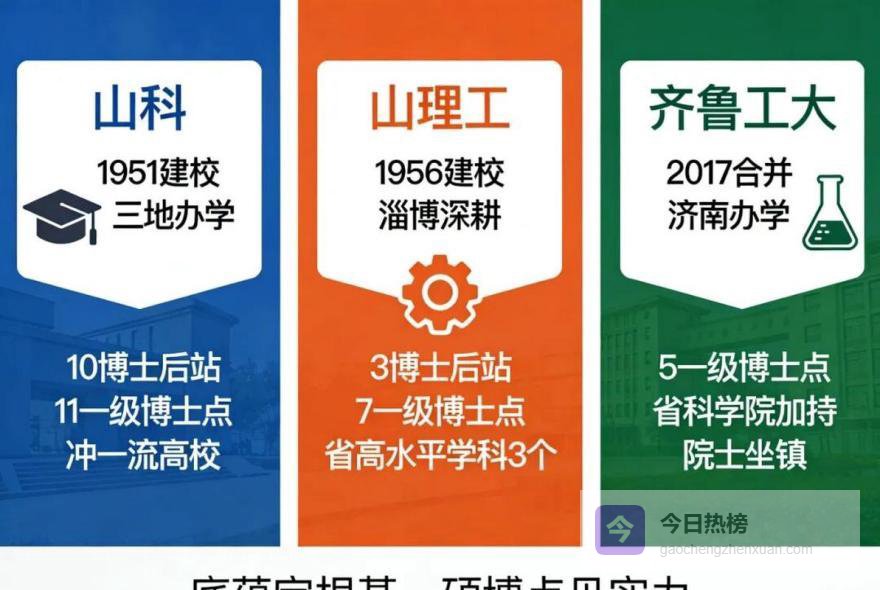 2026届山东考生和家长注意了哈,填志愿绕不开的山东理工三巨头——山科大、山理工、齐工大,到底选哪个才不浪费分数?这三所学校各有千秋,不少家庭对着志愿表反复琢磨,越算越没头绪。选大学本就是适配未来的事,找对契合点比盲目追热度更重要。