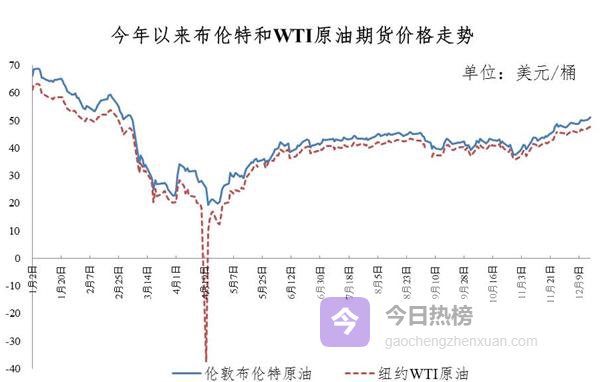 2.2 ◇ 美元走弱,美元计价原油“水涨船高”11月初至今,美元指数累计下跌近4%,以美元计价的原油期货价格自然水涨船高。伦敦布伦特油价突破50美元/桶,刷新9个月高点;本轮周期平均价位分别达到49.68美元/桶、46.46美元/桶,环比上涨5.49%和4.98%。
