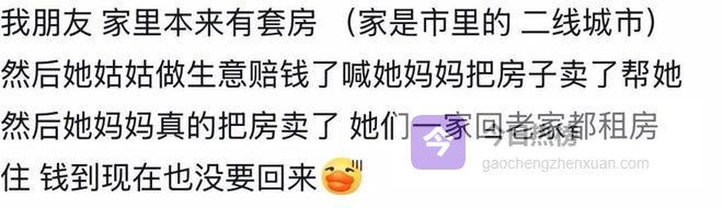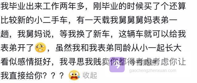 让我卖房资助他儿子发展,车子不能卖,我还得当一个免费的司机,好好好,算盘珠子打到我的脸上。