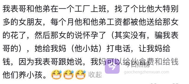 做一个姑姑好不容易啊。又要给钱,还要帮忙抚养孩子?咱就是说,表哥知道假怀孕之后,会是什么神情?