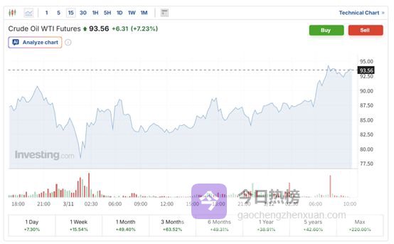 WTI原油期货15分钟走势图 来源:英为财情