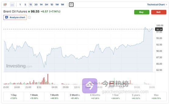 周四亚盘,国际油价延续涨势,截至目前,美、布两油双双涨超7%。布油距离重返100美元/桶大关仅一步之遥。