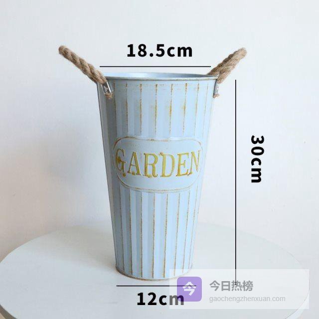 三、复古工业风:铁艺花桶的时光印记做旧处理的铁皮花桶自带故事感,斑驳的蓝灰色调像是从欧洲古董市场淘来的宝贝。特别适合美式乡村或工业风装修,随意插几支干棉花或尤加利叶,就能成为客厅视觉焦点。加厚镀锌层让这款花器兼顾颜值与实用性,户外使用也不易生锈。