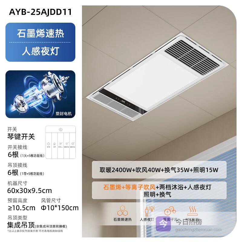 【品牌直营】奥克斯风暖浴霸灯暖照明排气一体集成吊顶300x600卫生间浴室式暖风机【包安装|石墨烯】¥