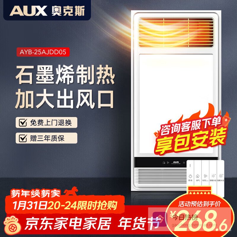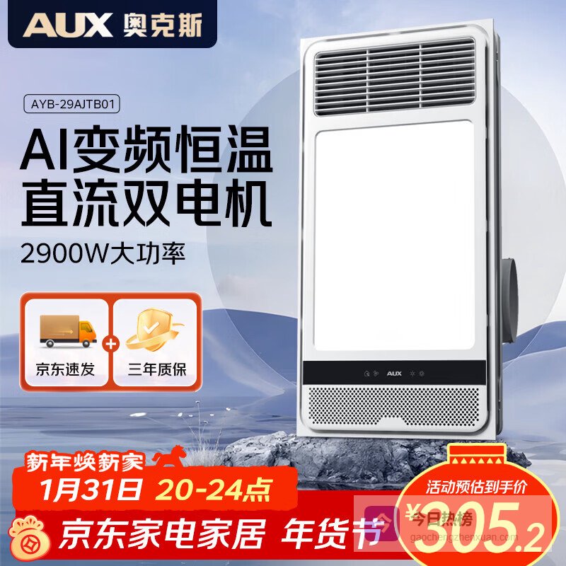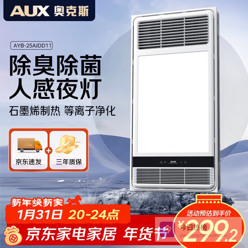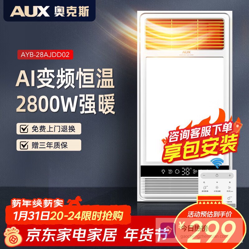 【京东自营】奥克斯风暖浴霸D系列变频浴霸暖风照明排气一体TB01¥