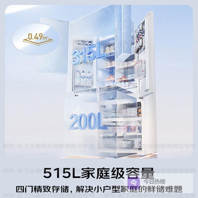 超大容量515L:轻松存放整月的食材,无论是新鲜蔬菜还是肉类,都能一一容纳。