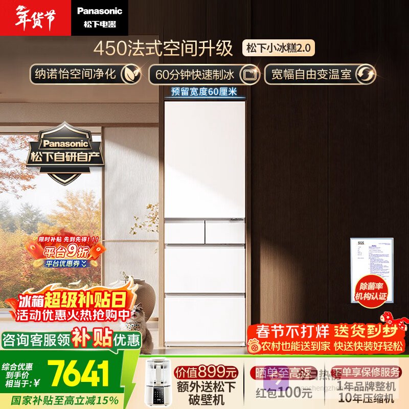 【京东自营】松下小冰糕2.0450L法式多门冰箱小户型家用嵌入式无霜自动制冰一级能效NR-EE45B¥