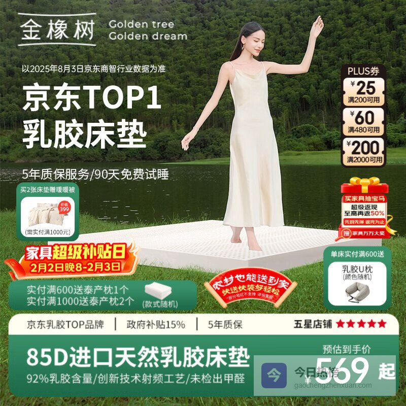 推荐入手:金橡树天然乳胶床垫 5cm 适中软硬 1*1.9米