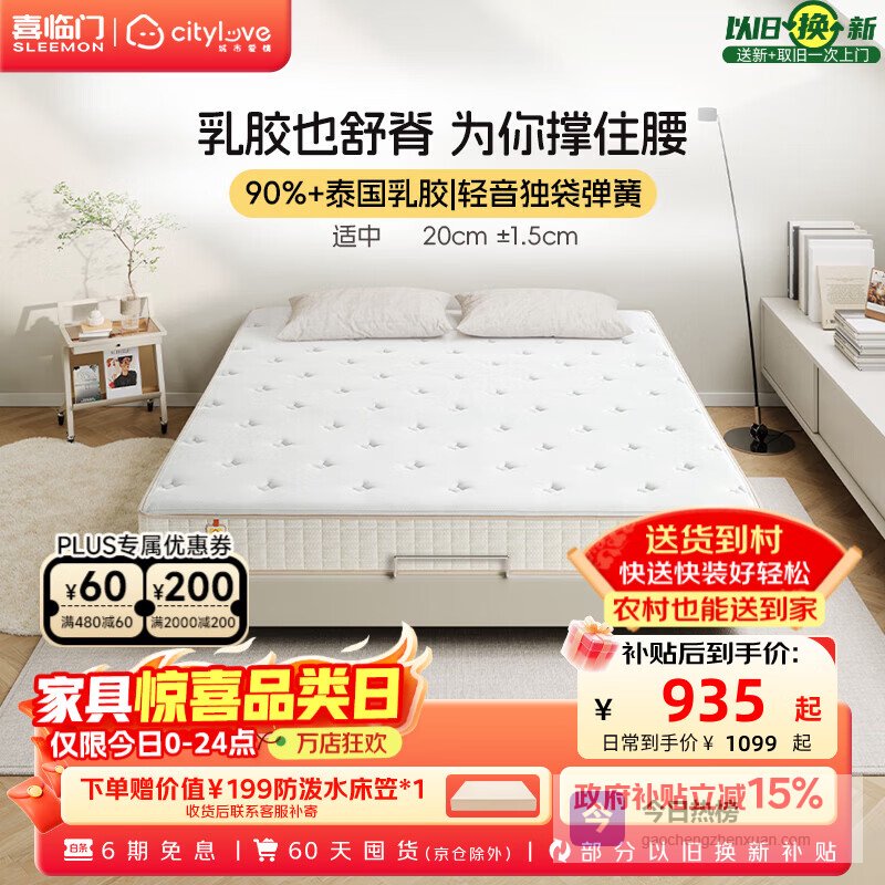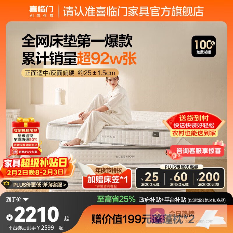 【品牌直营】喜临门乳胶黄麻床垫轻音独袋弹簧床垫席梦思白骑士plus版【全网爆款】双睡感/25CM1.¥