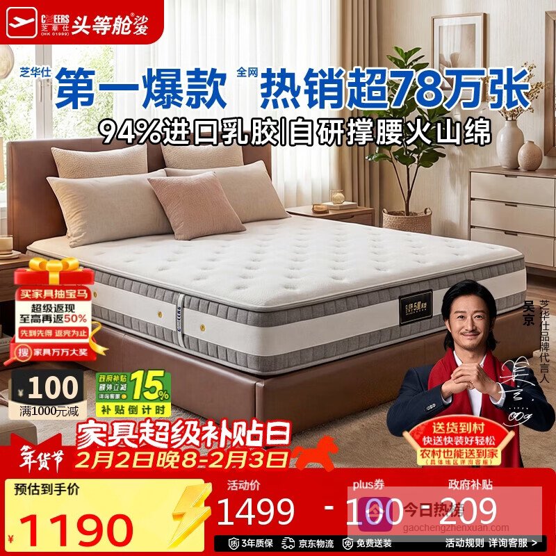 推荐入手:芝华仕D026经典乳胶独立弹簧床垫 1.8m