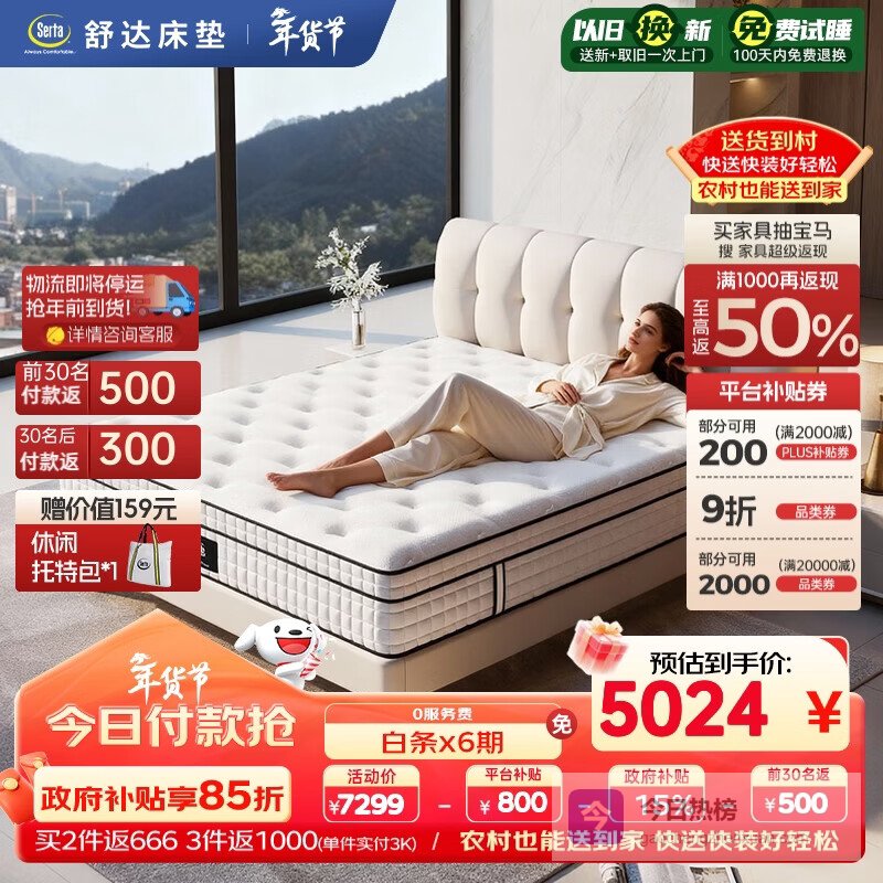 【京东自营】舒达致眠乳胶核心技术弹簧超体线下同款床垫1.8*2米适中睡感¥