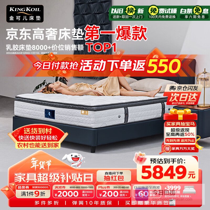 推荐入手:金可儿繁星C+乳胶床垫1.8m