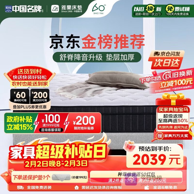 【京东自营】雅兰蘭朋友舒适3.0进口乳胶加厚独袋弹簧床垫1.8*2米软硬适中¥