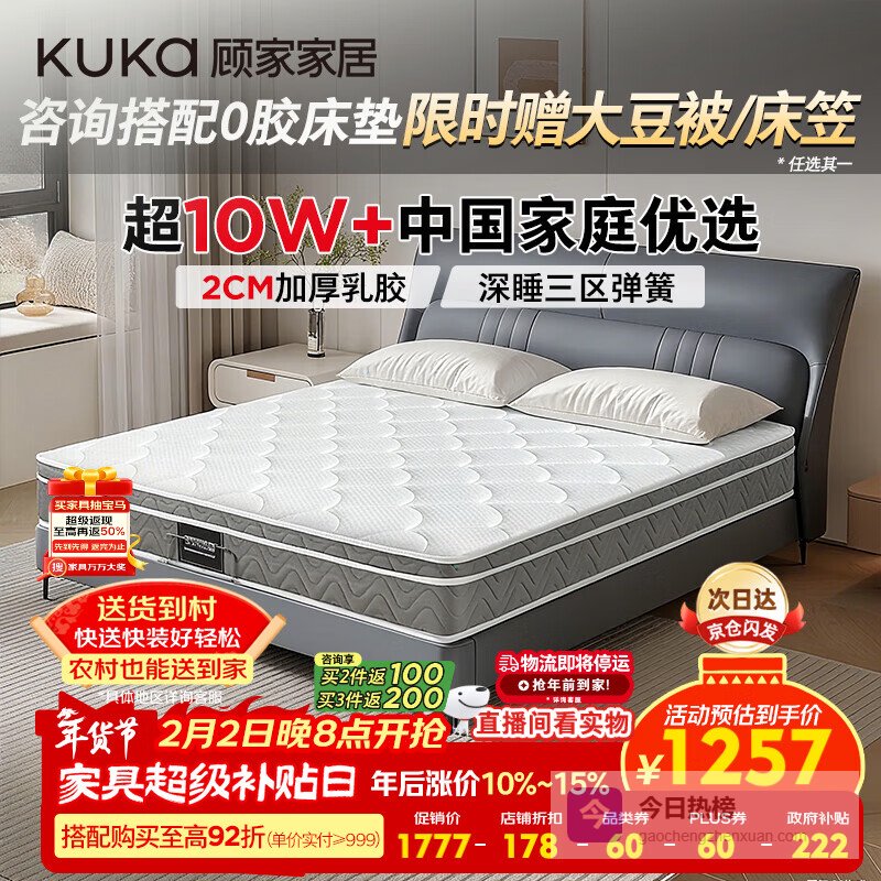 【京东自营】顾家家居门店同款2cm天然乳胶床垫专利深睡席梦思梦想垫PLUS1.8米京仓闪发¥