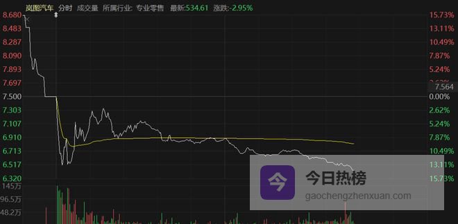 本次上市采用介绍方式,不涉及新股发行融资。从首日交易情况看,岚图汽车股价开于7.5港元/股,随后快速下挫,一度最低触及6.4港元。截至发稿,岚图汽车报6.45港元,跌幅达14%。