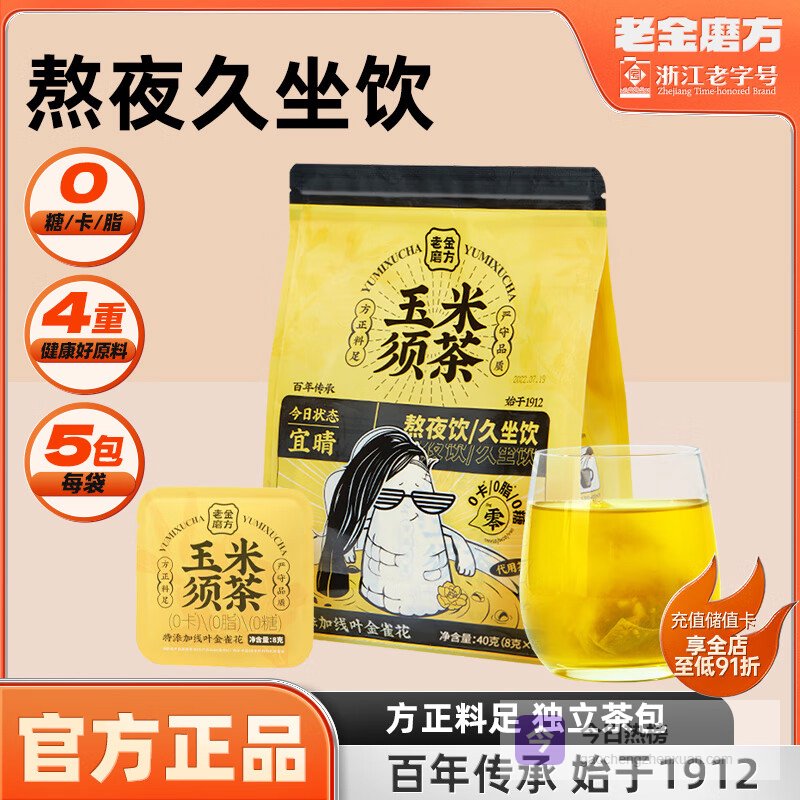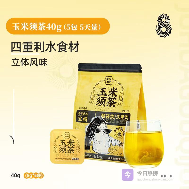 三、老金磨方玉米须茶:午后轻养时刻会议室里的第三杯咖啡开始让人心悸时,老金磨方玉米须茶正飘着淡淡的荞麦香。40g体验装内含10个独立茶包,玉米须搭配栀子、茯苓等草本,0糖0卡的设计让养生毫无负担。