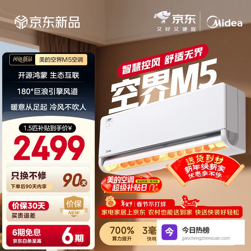 【京东自营】美的空调空界M5大1.5匹新一级能效舒适风节能省电【纯铜管】卧室空调挂机国家补贴KFR-¥