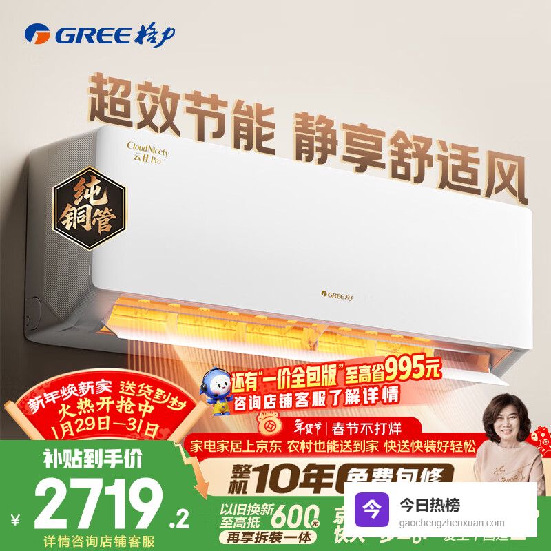 【京东自营】格力空调云佳pro1.5匹新一级能效变频纯铜管卧室挂机新品升级省电空调国家补贴KFR-3¥