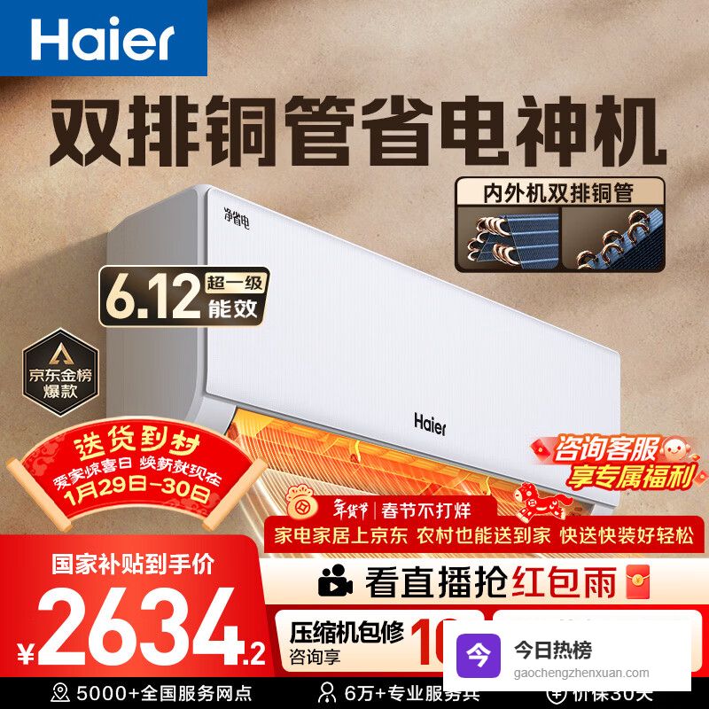 【京东自营】海尔空调净省电Plus大1.5匹内外机双排铜管挂机一级变频冷暖壁挂式国家补贴KFR-35¥
